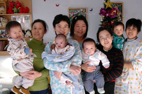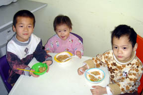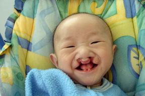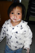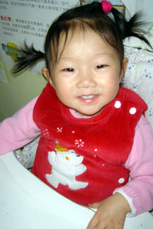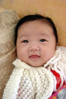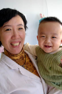 Tian Xi giving us a big wide smile. To get him to smile, our staff often say to him in chinese : "Kai Hua" - which means "Open Flower".