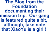 Fu Xia, our oldest boy at Blue Sky, unfortunately, did not receive the surgery this time. He will hopefully be scheduled for the next surgical mission in Shanghai in March 2009.