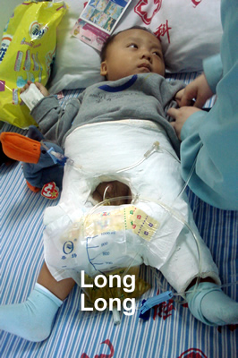 Long Long had surgery on his dislocated hip and is in a body cast for 8 weeks. He still needs further surgery on his dislocated knees.