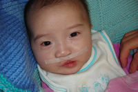 The neglect Hui Jing had already suffered since birth was unmistakable. Her head was misshapen, completely flat on the back skewing to one side, which also showed her ear pressing firmly in against her head; she had obviously been kept lying on her back, rarely moved, much less held. As I picked her up and held her, her neck had to be supported because she had not been given the opportunity, i.e., held upright, to develop the muscles necessary to hold up her head. The more heartbreaking part for me, however, was her lifeless stares when she lay motionless in my arms. She looked up at the ceiling. She looked past the curtain. She looked out the window. But she saw nothing. I had seen looks like that before in movies, when actors portrayed someone in deep despair. This was the first time I have seen the look on someone in real life. And it was on a five-month old baby, the look of deep despair. I could not imagine the helplessness she must have felt when all her cries went un-responded, all her needs went un-fulfilled. No mommy, no daddy, no one, came to her aid, gave her a cuddle. To me, she looked as if she had given up on this world. Wouldn't anyone, if we were virtually deserted, left with no coping mechanism, for five months? "You will see the changes in her after staying at Blue Sky," Leslie said to me as I distressed over Hui Jing's conditions. She had volunteered at Blue Sky longer and had seen transformations of other children. I didn't doubt her, as the children I had met at Blue Sky all looked happy and healthy but whose pictures upon arrival told very different stories. Still, I hadn't expected that change would begin so quickly. A week later, upon my next visit, I was overjoyed to find that, while she continued staring as if she had x-ray vision, her eyes no longer looked like they belonged to a lost soul. There was the tiniest hint of life starting to flicker in them. Then the following week, she could be held upright needing only slightest support at her neck. Few more weeks past, her head was still skewed, but less pronounced than before. Her gaze now no longer looked empty and she no longer felt like a rag doll in my arms. Beyond that, however, I couldn't tell if she was beginning to take in and process information. With some other children, I could "see" them think. Not Hui Jing; her face gave no clue as to what was going on in her little head, just the same quiet, constant stares. I thought about the scientific studies that talked about formation of neural transmitters in the early months of life and began to worry about the irreparable damages already caused by the lack of stimulation. Hoping to mitigate that, I tried to do something to stimulate her on each visit. I was thrilled when I saw and heard her laugh the first time as I tickled her, even if it might only have been a result of reflex. I tickled her more, hoping this form of sensory stimulation could aid in her development in some way.