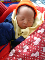 even though she didn't speak a word of chinese ! We are sad that she has returned to Holland, but hope she will visit again soon. Thanks Sandra ! * Baby Zhi Jing, pictured left, our youngest at the moment, turned 2 months old today (the 14th). She has quite an appetite and has no problems drinking milk formula, despite her cleft lip. She is now 5.16kg, and looking nice and chubby ! * We had a little bit of a scare with Baby Tian You, our bladder exstrophy baby. He has 2 inguinal hernias that decided to descend rather dangerously, and were causing him pain. This was late at night, and we called the surgeon who gave us a quick tip to have the hernias subside- basically hang him upside down. Luckily, the hernias did subside and he is alright. He needs surgery to repair this defect (one of the many surgeries he needs).