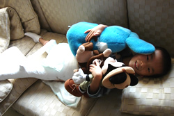 after the summer holidays and are bringing lots of goodies. Mostly, the kids are happy to see familiar faces. The older ones (LuoFei, Long Long and Jian Gong) were taken out by Leslie and family for a day of swimming ! Their first experience ever. Needless to say, they loved it. JianGong (pictured left) has been working so hard on his rehab and exercises, that he can now walk a few paces on his own with the walker. So a nice reward came from Leslie who took him to see Disney on Ice ! * On Monday, 8 Aug, our two cleft boys (Xiao En and Tian Xi) underwent surgery for palate repair (Xiao En), and lip repair (Tian XI). They are in recovery, and hopefully not in too much pain. We hope to have them back in a week's time. * Xrays of Xiao Dai (pictured on the right) reveal that he is missing the 3 lower ribs on his left side, and also has possible compression of his verterbrae. We are trying to find an orthopaedic doctor to consult with on his case, as we are quite worried that the location of missing ribs is so near his heart. From our research on the internet, his condition seems to be very rare.