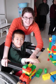 - Feb21st - Feb 27: Jian Gong, our 7yr old with arthrogryposis and clubbed feet, was admitted to hospital on Monday for surgery to correct his feet and knee. He is accompanied in hospital by his best friend Sarah Miller, an American volunteer who was living at BlueSky and who had been teaching him the basics of reading and writing. They are now inseparable. Jian Gong's surgery was performed on THursday, and he is doing well. The doctors have said that he will be in hospital for about a month. We have great plans for him during his recovery at Blue Sky - we are going to hire a private tutor for him to get him up to speed with regular school kids his age, with the hope that he will be accepted into a local school eventually. Since he is starting his education from scratch, this may take a while, but we have such belief in him as he has proven to be an extremely bright boy who is willing to learn.This week we also welcomed 2 kids and their caretakers for 2 week physical therapy. Ye