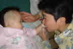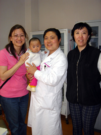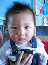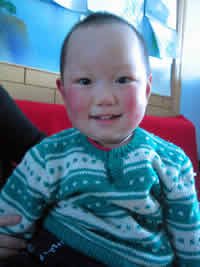 Tian Xi had a difficult bilateral cleft, and they managed to make him look gorgeous ! We are grateful to Operation Blessing for assisting us in the arrangement of the surgeries and for sharing part of the cost. * Throughout the summer, our older kids were having lessons by one of our staff with a little experience in teaching, since we could not find a teacher. Starting mid-August, an experienced teacher is being sponsored for 3 months by Neighborhood Chinese School and teaches the kids 3 hours a day. They are being taught all the basics of chinese, english, math and science. Our most important student is Jian Gong, our 7 year old from a really poor orphanage. We have high hopes for him to be an academic, since he is limited physically. He will also be with us for a while, since his orphanage holds little future for him. He is so eager to learn and has already picked up some english skills just by spending time with our english speaking volunteers. * Blue Sky threw Xiao En, one of our cleft boys, a cake party to celebrate his 1st birthday ! * Blue SKy is also helping a poor family from Inner Mongolia. The mother is a school teacher in a rural area, and her 5 year old son has a complicated heart condition. They have been told by a heart hospital in Beijing that nothing can be done to help her son. We decided to let them come back to Beijing for another consultation at the heart hospital that we have been very happy with. They travelled a full day by train to get to Beijing, without sleeping berths, just regular seats. After consultations with the doctors, they have told us that he needs a special man-made valve to be surgically implanted, and that the valve can only be obtained in the States. The valve can be brought to Beijing by visiting surgeons frm the States, and surgery can be performed. The cost will be extremely high, but we have said to proceed. Further tests will be done on the child to confirm the procedure.
