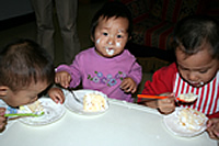 from a flat tyre along the way, we had a good time visiting with the orphanage officials and the children. We were also taken to see triplets at the local army hospital, that were first abandoned at the orphanage in a box, and whose parents (& grandparents) later came forward to claim responsibility. They could not afford the hospital bills at the time, but are now raising funds with the help of the orphanage. The babies weigh approximately 1.4kg at 1 month old. We also re-visited with Ya Tian and Ya Mei, who had spent about a month at Blue SKy while waiting for surgery last year. THey are both looking very well taken care of as you can see. * Tian You, our bladder exstrophy baby, is still waiting for surgery in the hospital. With the May holidays in China, no surgery is performed until after May 8th, but he seems to be doing well. * Qing Qing, the 15 year old burn victim, has had her hand repair surgery on April 25th. This is the second stage of surgery to seperate her fingers. She is still in hospital recuperating. * FuKang is still waiting for his passport to be processed following which we can arrange for his surgery in Singapore. * Luo Fei is scheduled to see the doctors this week for evaluation for surgery. * We have now hired a full-time pre-school teacher to be on staff at Blue Sky. She was formerly teaching migrant workers children (a free school organised by the local catholic church). FInally, Jian Gong (our 7 year old who has not had any education) will get proper tutoring to get him on track for a regular school. THe teacher will also teach our toddlers.